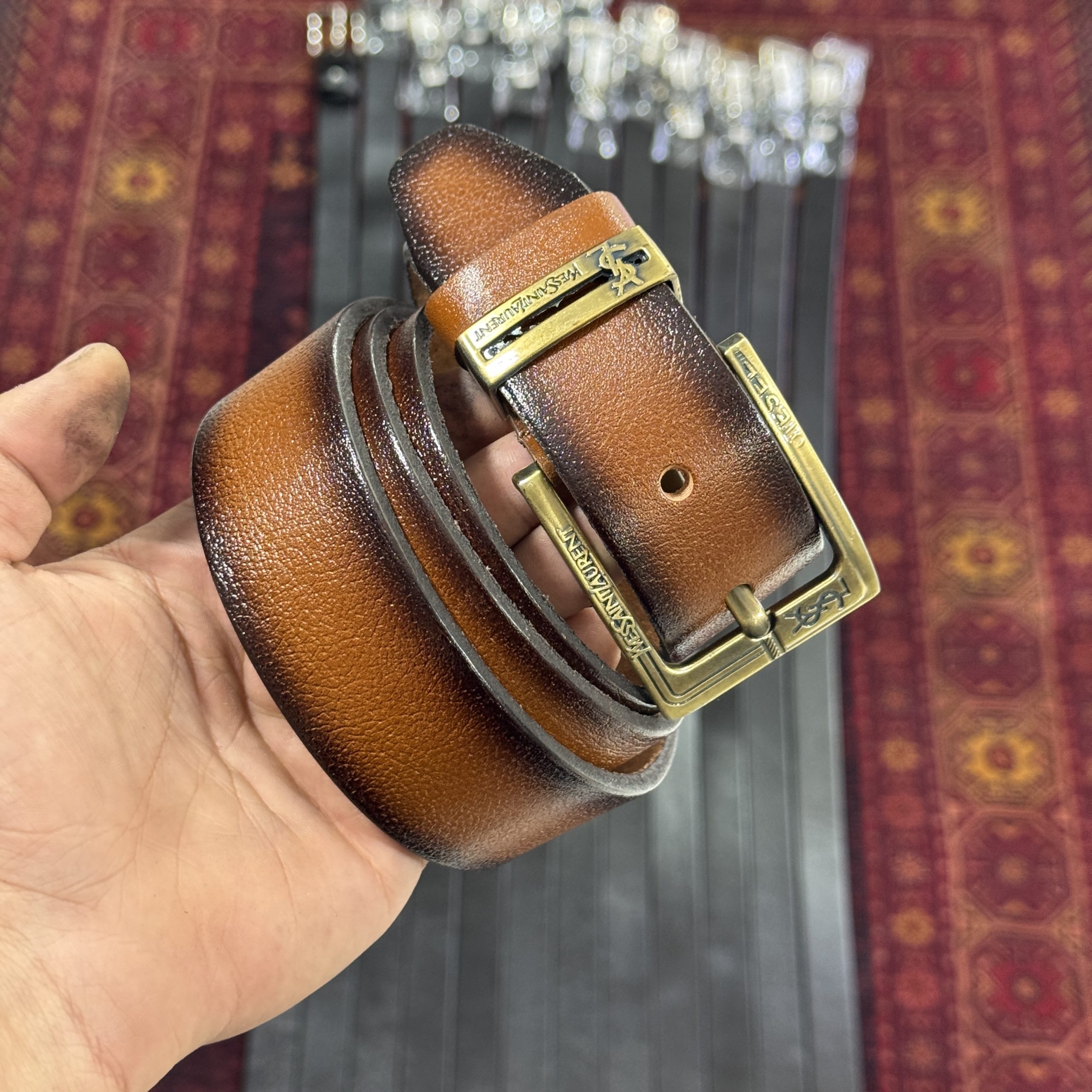 کمربند طرح دار چرم مردانه