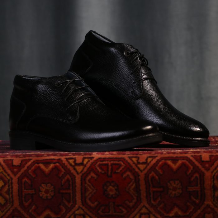بوت چرم مردانه مدل بندی ساده با چرم شرانگ