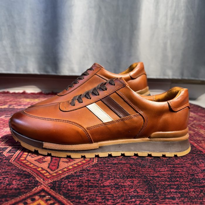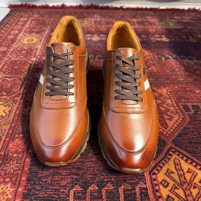کفش چرم مردانه اسپرت مدل آنتونی بندی رنگ عسلی