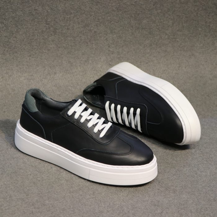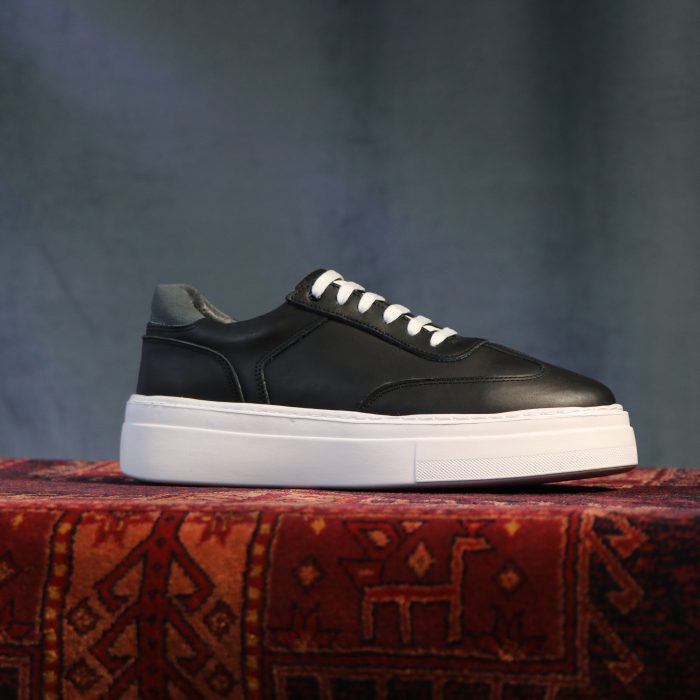 کفش چرم مردانه اسپرت مدل ونس شاسی رنگ مشکی سفید